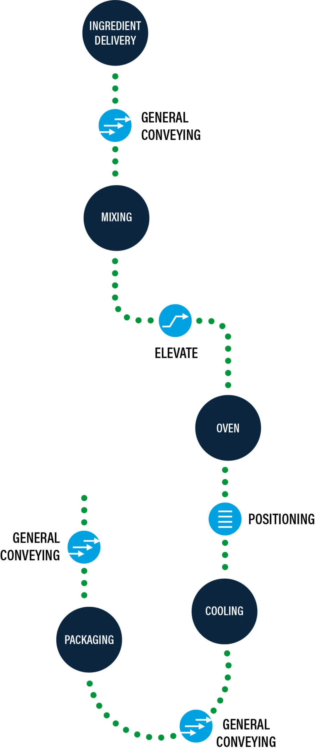 Horizontal motion is ideal for flexible food conveying. It offers the gentlest product handling and optimal sanitation and validation.