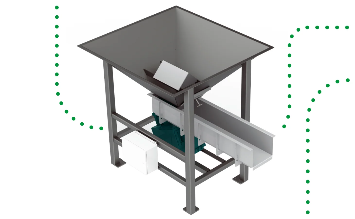 The Hopper Feeder efficiently receives and feeds bulk product throughout your processing line. Don’t see your products? We have decades of experience throughout the food industry – contact us for your custom configuration.