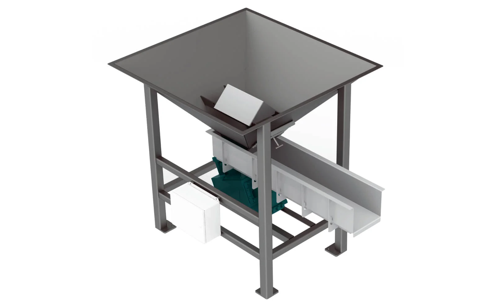 The Storeveyor is a combined stainless steel bulk storage bin with belt conveyors to discharge product, customized precisely to your application and process.